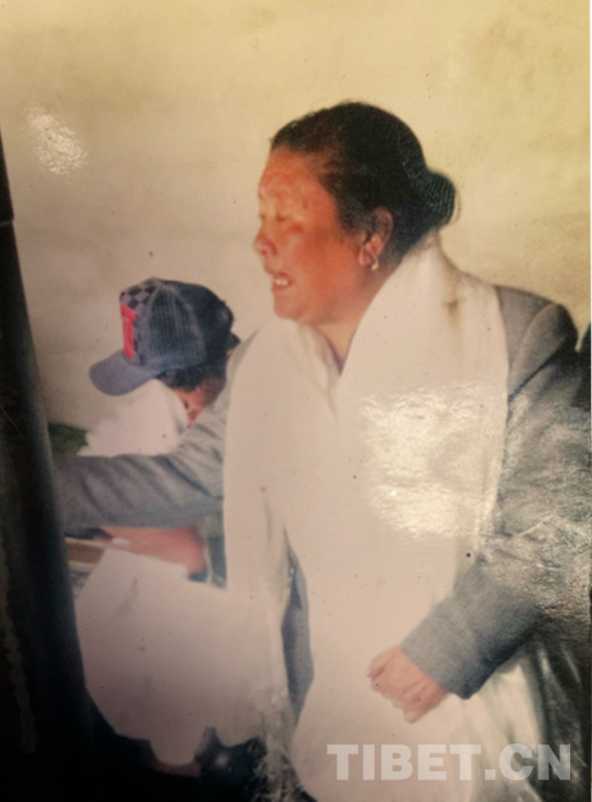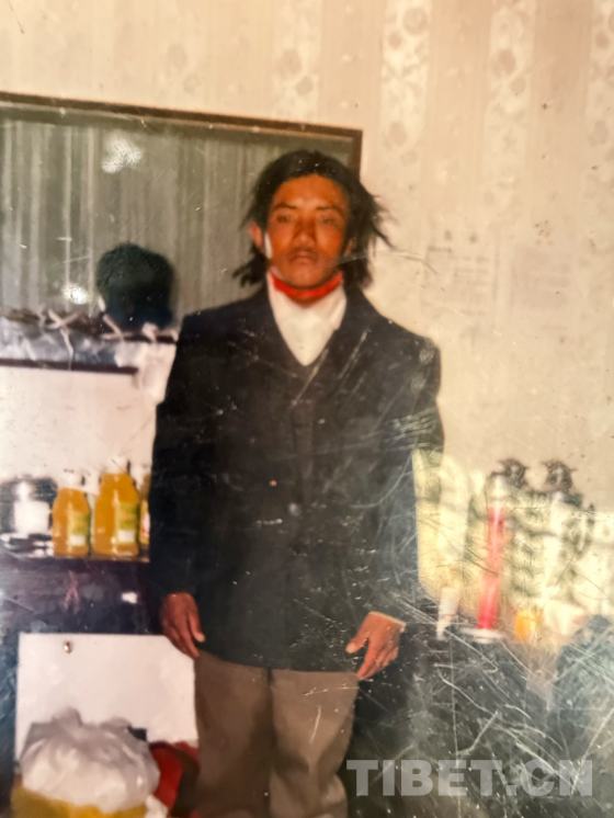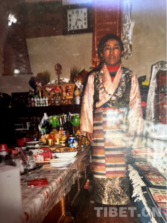 這張照片是我妻子,那時(shí)候大概30歲左右,是用新買的相機(jī)拍的。這衣服當(dāng)時(shí)也很流行,是拉薩女性的服飾。好像是在過年期間拍的,背景是我家在舊搶古村的房子。這個(gè)房子是我們倆結(jié)婚時(shí)就住著的,大概住了15年左右。那時(shí)候開了茶館和朗瑪廳,條件還不錯(cuò),大家都叫我西總。舊村旁邊有條河流,特別是現(xiàn)在草場(chǎng)變好后河水上漲,所以整個(gè)舊村都拆除搬遷了,并在原址上種了柳樹。