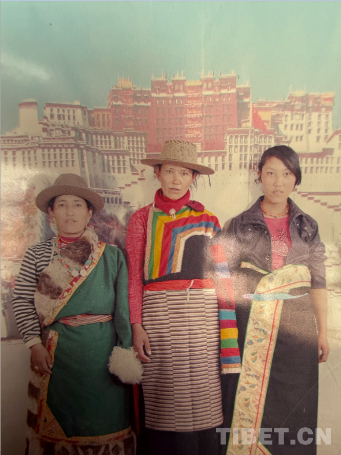這是我妻子和我小姑過年時(shí)的照片。這衣服叫森郭服飾,是我們改則特有的傳統(tǒng)服飾,其他地方?jīng)]有。傳說我們是格薩爾王的妃子森姜珠姆的后代,所以服飾也很有特色。