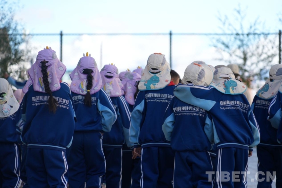 圖為在西藏阿里陜西實(shí)驗(yàn)學(xué)校操場(chǎng),孩子們列隊(duì)做操 攝影:邊子捷