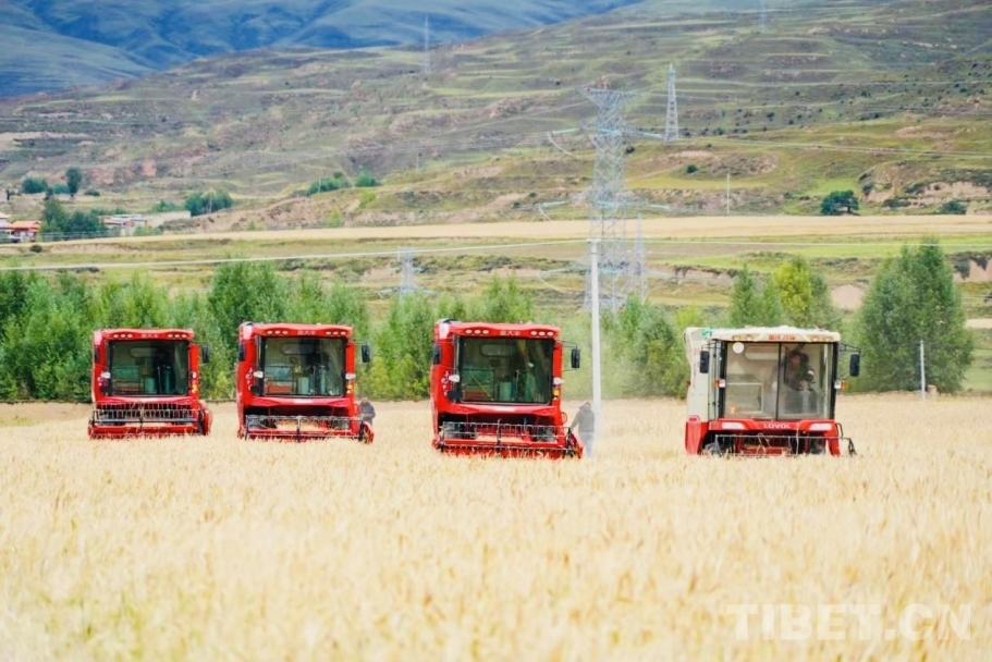 據(jù)了解,目前,甘孜縣全縣200余臺(tái)收割機(jī)正搶抓農(nóng)時(shí),秋收進(jìn)度已完成5%,預(yù)計(jì)9月中旬全面結(jié)束。(中國(guó)西藏網(wǎng) 記者/龍真多吉 供圖/甘孜縣委宣傳部 甘孜縣融媒體中心)
