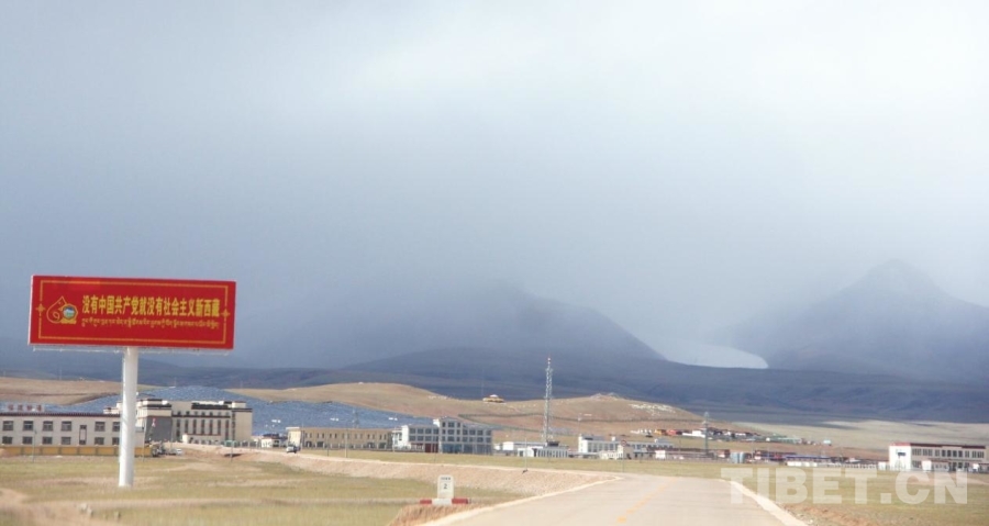 圖為快到雙湖縣城時,可以看到高架電線、光伏板、基站等基礎設施 攝影:趙釗