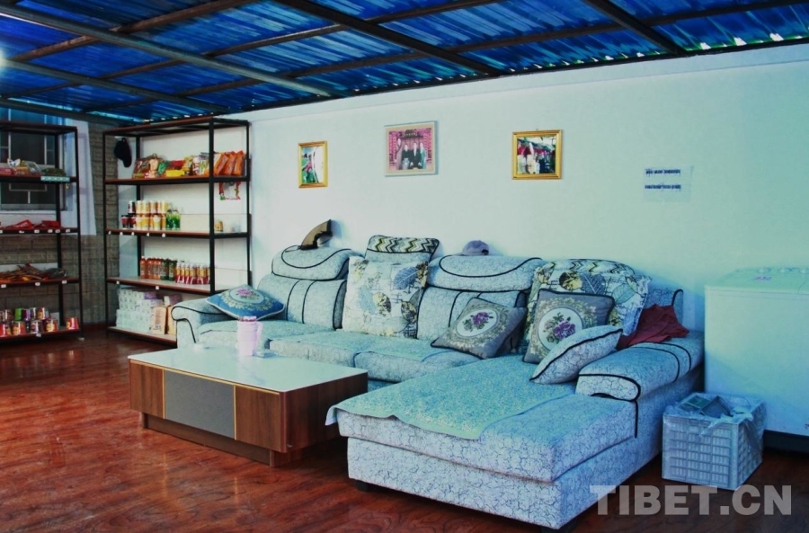 尼吉拉姆家在陜西援建邊境小康示范新居的一排排樓房中靠路邊一戶。走進戶門,院子搭著棚頂,形成了一個大的會客室,墻邊一溜柜子,上邊擺滿飲料、生活用品等,就是一個小小的便民商店了。這只是尼吉拉姆“產(chǎn)業(yè)”中的一項,她和丈夫羅啟明還經(jīng)營一家養(yǎng)雞場、兩人都擔(dān)任護邊員等,加上國家邊境補貼、草場補貼等,一年下來能有幾十萬元收入。