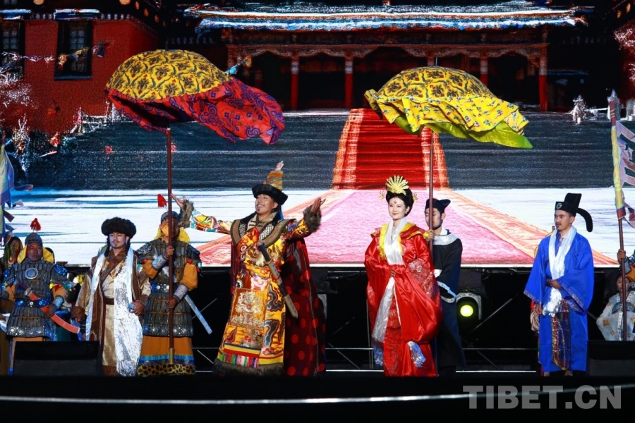 第二篇章“甲子禮贊”在與會領(lǐng)導(dǎo)共同啟動下推向高潮。由松贊藝術(shù)團與各鄉(xiāng)鎮(zhèn)演出隊聯(lián)袂創(chuàng)排的大型舞臺劇《墨竹長歌》震撼上演。該劇以四幕敘事,藝術(shù)再現(xiàn)了松贊干布的歷史功績、唐蕃和親的團結(jié)佳話、十八軍進藏往事以及新時代墨竹的幸福畫卷,生動詮釋了中華民族共同體意識在雪域高原的實踐。