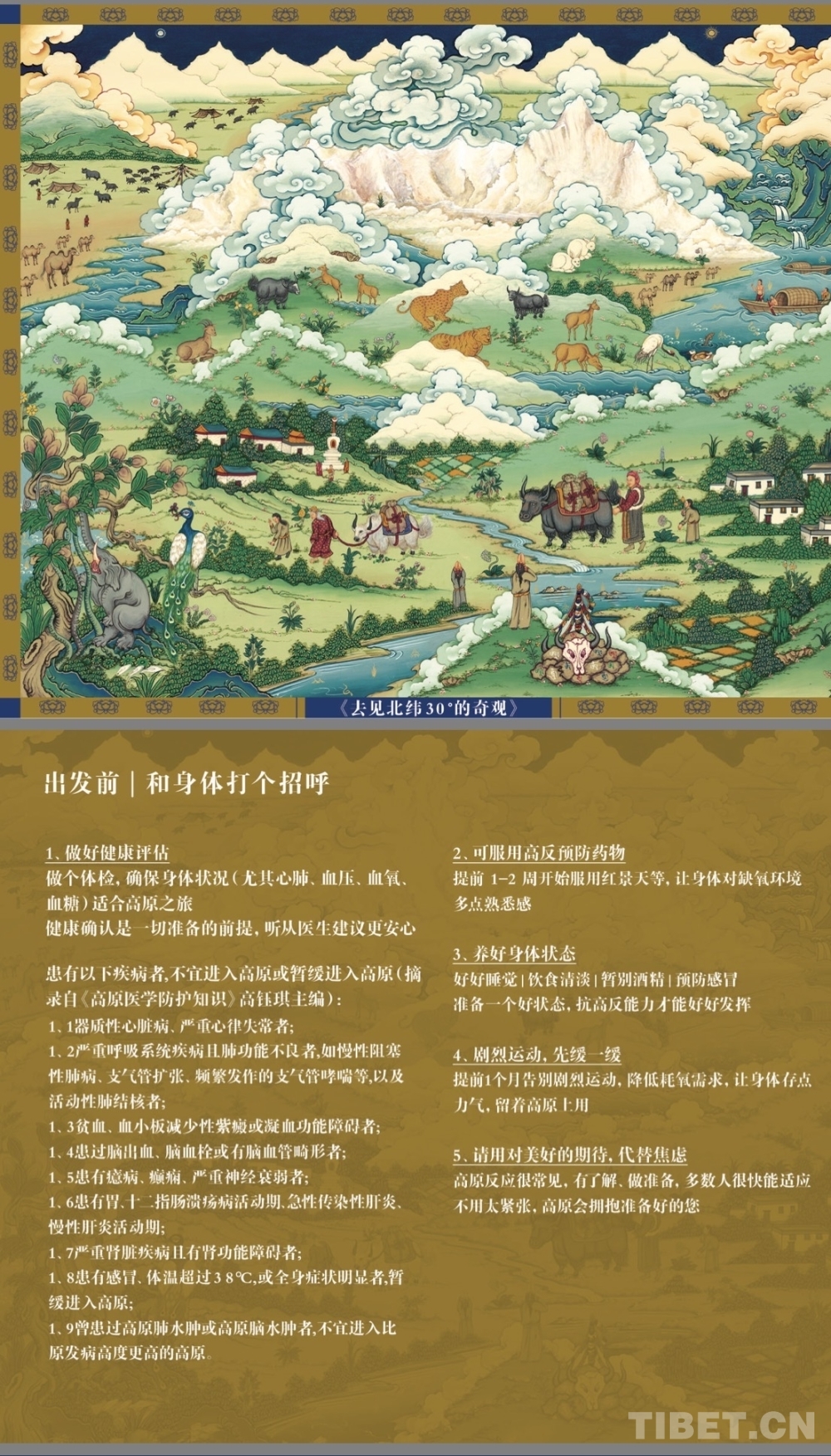 這場來自雪域高原的特別展覽,是一本《進藏健康科普指南》的濃縮。該指南以“守護生命”為主題,由西藏企業(yè)奇正藏藥發(fā)起,西藏非物質文化遺產勉唐畫派代表性傳承人曲水·旦增精心創(chuàng)作的,是首份集西藏非遺唐卡藝術與進藏健康科普實用功能為一體的手冊,正在線上線下免費長期發(fā)放中。