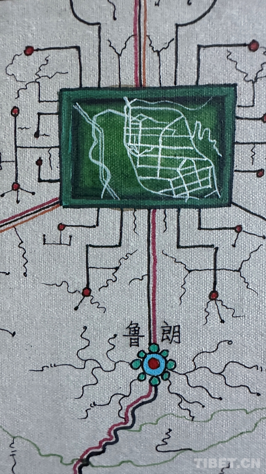 創(chuàng)作過程中最大的困難是如何藝術(shù)地表現(xiàn)公路網(wǎng)絡(luò)?!拔彝ㄟ^分析現(xiàn)代地圖、衛(wèi)星導(dǎo)航、古代寶藏圖和手繪地圖,發(fā)現(xiàn)西藏公路是順應(yīng)地貌修建的?!边_(dá)布描述著他的發(fā)現(xiàn),“沿著河流,一條河有幾個分支就有幾條路;沿著山谷,一個大山谷有幾個小山溝就有幾條路。俯看就像一棵大樹,又像是電腦芯片,一條主干道邊上分出無數(shù)支線?!?nbsp;