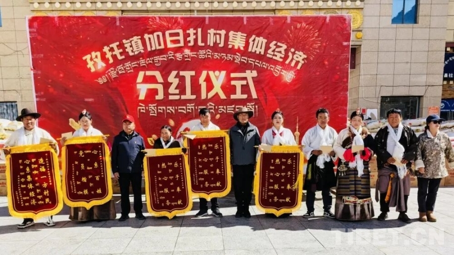 中國(guó)西藏網(wǎng)訊 近日,西藏自治區(qū)昌都市洛隆縣孜托鎮(zhèn)加日扎村在鑄牢中華民族共同體意識(shí)廣場(chǎng)舉行了一場(chǎng)熱鬧的集體經(jīng)濟(jì)分紅儀式。