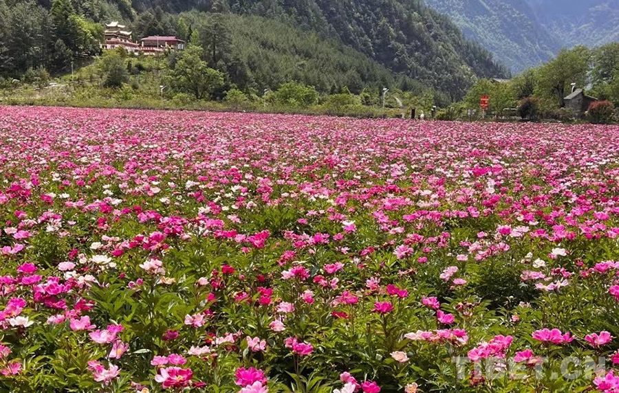 圖為最早種植芍藥時(shí),色龍村的花海 來源:當(dāng)?shù)毓﹫D