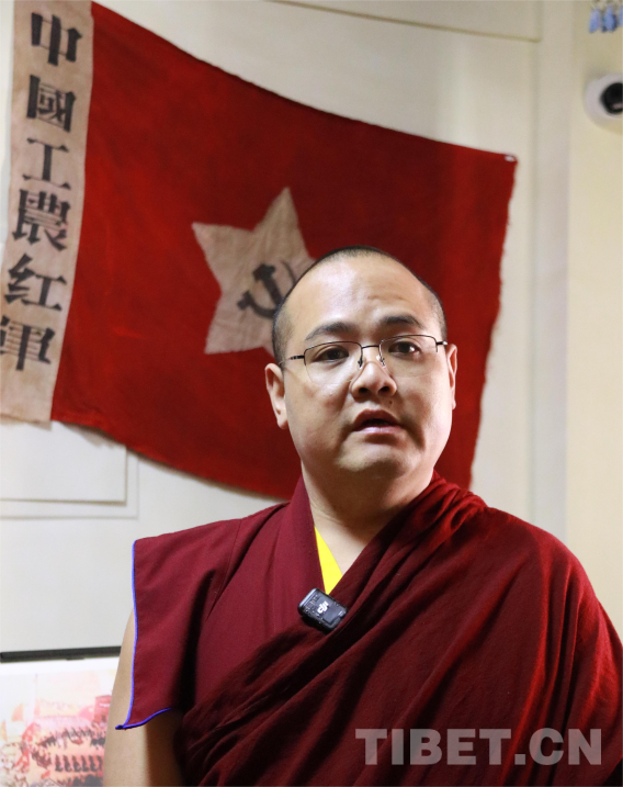 “這些紅色文物是慢慢累積起來的,甲央活佛總是跟我們說,紅色文物陳列室里的文物保存在寺院,但都是國家的?!遍L青說,“我們作為中華人民共和國的公民,作為一個(gè)僧人,在黨和國家的領(lǐng)導(dǎo)下,我們必須要愛國愛教?!?/p>