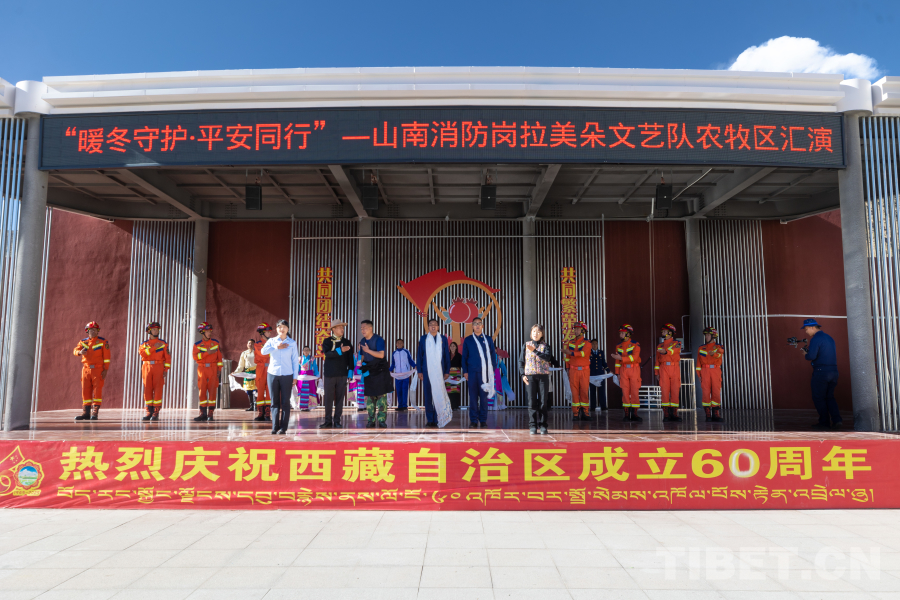 圖為山南市消防救援支隊(duì)崗拉美朵文藝隊(duì)“農(nóng)牧區(qū)暖冬消防行”巡演首演現(xiàn)場(chǎng)