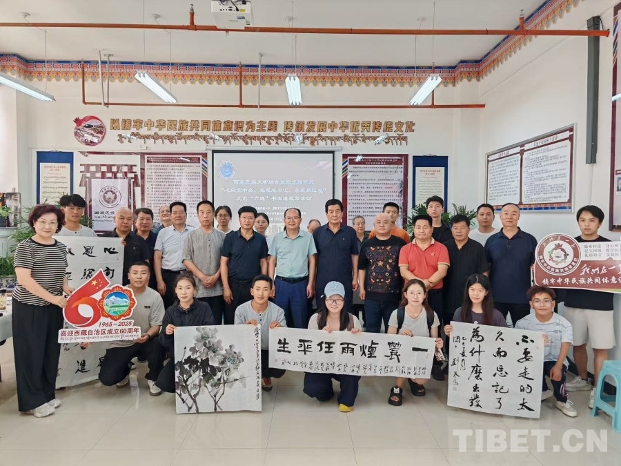 圖為西藏民族大學(xué)聯(lián)合陜西省咸陽市文聯(lián)開展“心向黨中央、感恩總書記、奮進(jìn)新征程”活動合影