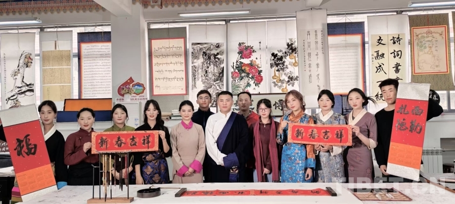 新春與藏歷新年之際,西藏民族大學(xué)書法基地舉辦的“送萬福進(jìn)萬家”“扎西德勒獻(xiàn)給您”活動成為各族師生間溫暖的情感紐帶。各族師生齊聚一堂,揮毫潑墨,用漢藏雙語書寫對新年的美好祝福。一副副春聯(lián)、一張張“?!弊?,承載的不僅是吉祥寓意,更是濃濃的情誼,讓“在一起”的溫暖在節(jié)慶氛圍中升華。在學(xué)校運(yùn)動會上,西藏民族大學(xué)書法基地聯(lián)合社團(tuán)開展文化志愿服務(wù),將體育競技的“動”與書法藝術(shù)的“靜”巧妙融合。千余幅即興創(chuàng)作的漢藏文書法作品被贈予運(yùn)動健兒和師生,讓拼搏精神與人文底蘊(yùn)交相輝映,在互動中增進(jìn)了彼此的情誼。西藏民族大學(xué)書法基地帶領(lǐng)學(xué)生積極“走出去”,參與西安外國語大學(xué)民族團(tuán)結(jié)教育月等活動,拓寬學(xué)員視野。更值得一提的是,學(xué)生代表扎西曲吉登上了第十六屆海峽兩岸(廈門)文化產(chǎn)業(yè)博覽交易會的舞臺,現(xiàn)場創(chuàng)作的“團(tuán)結(jié)統(tǒng)一”漢藏雙語作品,以其深刻寓意和藝術(shù)美感,成為傳遞各民族交往交流交融深情的“文化名片”,并被組委會收藏。