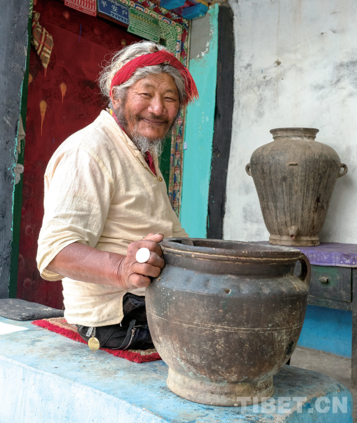 《守墓人今安在?》《次仁烱寺——晉美林巴的歸隱地》《雪康莊園——老莊園時光再現(xiàn)》《“神仙故鄉(xiāng)”的陶藝世界》等都是我非常喜歡讀的章節(jié)。通過這些章節(jié),可以了解傳說中始于吐蕃時期的守墓人制度,以及“現(xiàn)代守墓人”強巴曲桑老人的生活:“到藏王墓19年來,他幾乎沒有回過家中,雖然白日村幾乎就在藏王墓能看見的位置……每天早晨,要圍繞陵區(qū)小走一圈,觀察墓地上是否有裂縫,是否有塌方的痕跡”。雪康莊園朗生的后代、70歲的維色老人怡然自得的笑容,“神仙故鄉(xiāng)”堆巴村77歲的制陶匠人次仁古桑的微笑,堆巴諧欽傳承人格桑老人含蓄的笑容,令人難忘。他們刻滿歲月風(fēng)霜的臉上綻放的質(zhì)樸笑容,如陽光般,充滿對陌生人暖暖的善意。他們的笑容與故事具有直抵人心的感染力,可以感受到他們內(nèi)心的安寧以及對當(dāng)下生活全然滿足的幸福,同時也可以讓人在紛擾的現(xiàn)代生活中尋得內(nèi)心的平靜與力量。