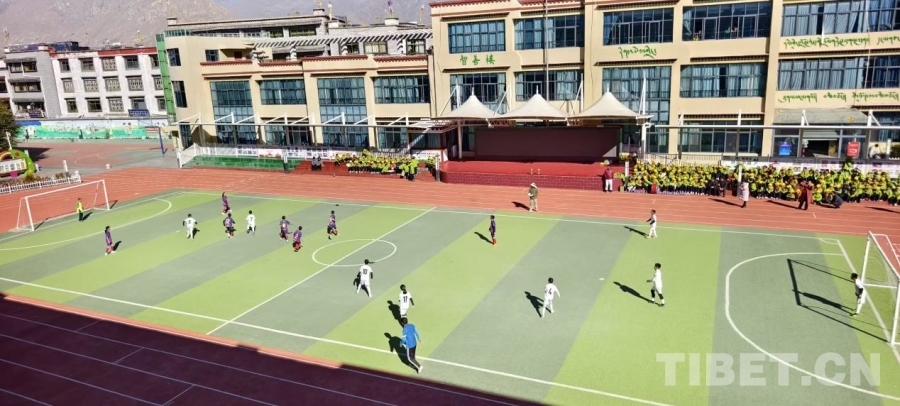 圖為拉薩市城關區(qū)海城小學第九屆“未來之星”校園足球聯(lián)賽比賽現(xiàn)場 攝影:多吉扎巴