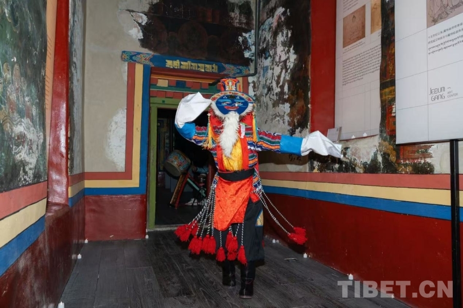吉本崗藝術(shù)中心作為西藏首座經(jīng)保護(hù)性改造而成的公共文化空間,前身為19世紀(jì)古建——吉崩崗拉康。其獨(dú)特的立體壇城結(jié)構(gòu)、珍貴的《香巴拉之戰(zhàn)》清代愛國主義壁畫等文化遺產(chǎn),為此次非遺展演提供了深厚的歷史背景與空間底蘊(yùn)?;顒?dòng)創(chuàng)新采用“雙回字形”沉浸式布局,將古建外廊的常設(shè)展與內(nèi)廊當(dāng)代藝術(shù)展巧妙結(jié)合,設(shè)立八個(gè)固定表演點(diǎn)位。觀眾以“循環(huán)觀演+自由漫游”的方式穿梭其間,在移步換景中感受非遺技藝與當(dāng)代藝術(shù)的交融共鳴,實(shí)現(xiàn)“空間、非遺與新生”的和諧共振。