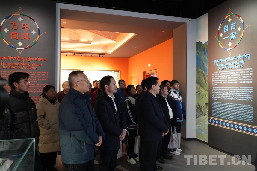 鄭堆在致辭中指出,西藏自古以來就是中國不可分割的一部分,一系列遺址、文物、檔案、文獻串聯(lián)起的歷史證據(jù)鏈,確鑿印證西藏與祖國同源同流、血脈相連,充分證明了中華民族共同體的形成和發(fā)展是人心所向、大勢所趨、歷史必然。中國藏學(xué)研究中心作為中國藏學(xué)研究的國家隊,自成立以來始終堅持“為維護祖國統(tǒng)一,加強民族團結(jié)服務(wù);為西藏和四省涉藏州縣發(fā)展穩(wěn)定服務(wù)”的宗旨,圍繞西藏的歷史法律地位、西藏地方與祖國關(guān)系史、歷代中央政府治藏政策等進行了全面、深入的研究,為中華民族發(fā)展史研究夯實了堅實的基礎(chǔ)。藏研中心集全國藏學(xué)研究之力,先后完成了《西藏通史》和《西藏文化史》等重大項目,分別以八卷的體量、上千萬字的篇幅系統(tǒng)論證了西藏自古以來是中國不可分割的一部分,西藏文化是中華文化不可分割的有機組成部分。同時,扎實推動了《西藏早期文明史研究》《元以來西藏地方與中央政府關(guān)系研究》等重點課題,整理出版了《元以來西藏地方與中央政府關(guān)系檔案史料匯編》《中國第二歷史檔案館所存西藏和藏事檔案匯編》《中華大典·藏文卷》等一系列檔案文獻和史籍著作,為系統(tǒng)梳理西藏與其他民族和地區(qū)交往交流交融的歷史,推進中華民族發(fā)展史研究夯實了扎實的史料基礎(chǔ),也使今天的展覽擁有了雄厚的研究基礎(chǔ)。從自在到自覺,中華民族從千萬年的榮辱興衰中攜手走來;從“社稷如一”到“書寫美麗西藏新篇章”,西藏的命運始終與中華民族大家庭緊密相連。歷史鑄就的共同體,充分彰顯了中華民族國土不可分、國家不可亂、民族不可散、文明不可斷的共同信念。新時代,雪域兒女堅信,在中華民族強國建設(shè)的新征程上,中華民族共同體必然會在我們的共同奮斗中愈發(fā)牢固。