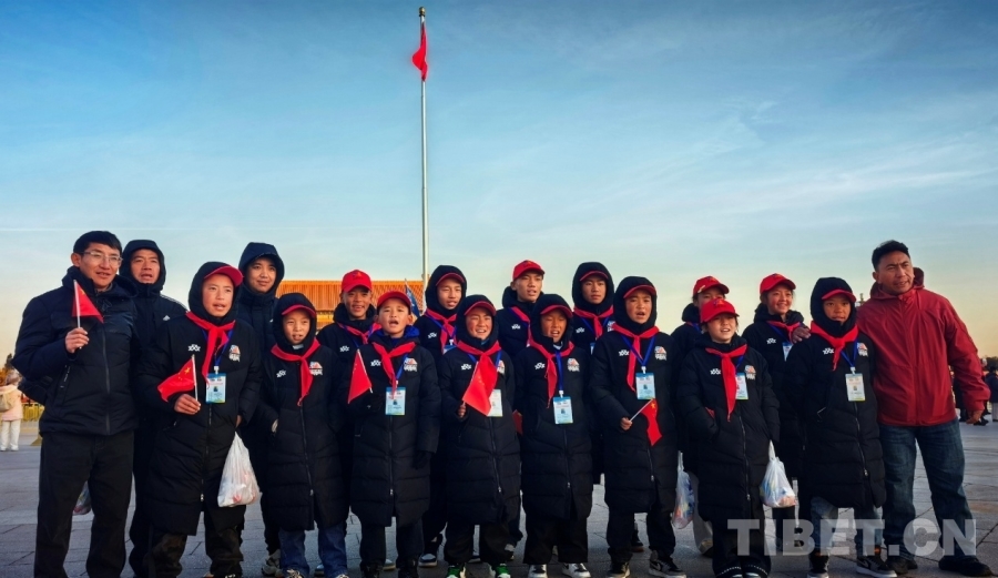 “祝祖國繁榮昌盛!扎西德勒!”12月26日清晨的天安門廣場,來自西藏自治區(qū)那曲市色尼區(qū)青少年足球隊的少年們在剛剛迎著朝陽升起的五星紅旗下,一起大聲為祖國送出衷心的祝福。