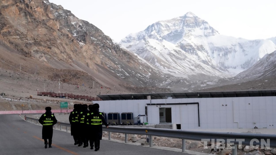 圖為民警在珠峰景區(qū)巡邏