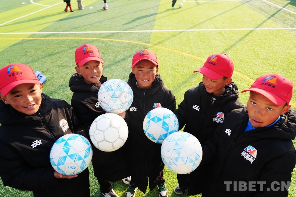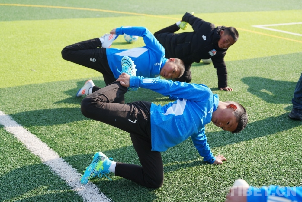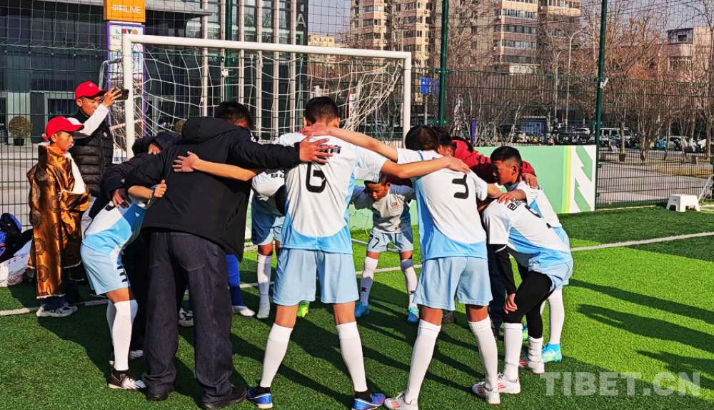 盡管正值寒冬,西藏的足球少年們已經(jīng)迫不及待地?fù)Q上球服開始跑動熱身。帶隊教練和球員們圍成圓圈,團抱在一起,大喊加油!