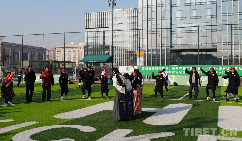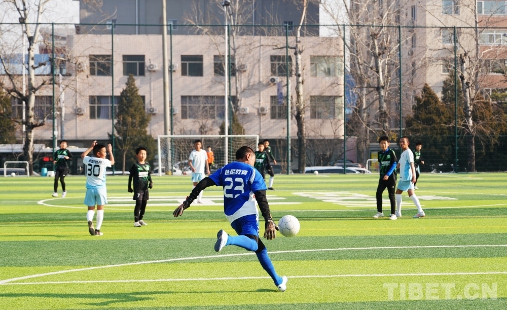 賽前儀式上,雙方球員列隊入場,西藏球員為北京球員獻上潔白的哈達,雙方輕觸拳面,彼此加油鼓勁。隨著裁判一聲哨響,比賽正式開始。綠茵場上,球員們盡情奔跑,汗水滴落紅彤彤的臉龐,呼出的氣息在寒冷的空氣中化作白霧,眼睛里卻裝滿對足球運動的認(rèn)真和熱愛。