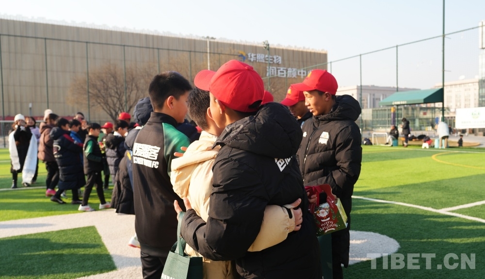 如果說賽場上的激烈競爭是全力以赴爭取勝利,那么,賽場下的互動就是友誼的開始,更顯溫情。當(dāng)比賽結(jié)束,西藏足球少年們飛奔在場內(nèi)歡呼勝利,北京小球員也與其擊掌致意。音樂響起,熱情洋溢的鍋莊在綠茵地上舞動,兩地青少年互贈禮物,擁抱在一起互贊“好球”。北京的小球員郭笑先真誠地說:“雖然我們輸了比賽,有些失落,但我們也從中學(xué)到了很多。我覺得你們的拼搏精神非常值得學(xué)習(xí)。下次有機會,我一定去西藏再賽一場。也想看看你們美麗的家鄉(xiāng)是什么樣的。”