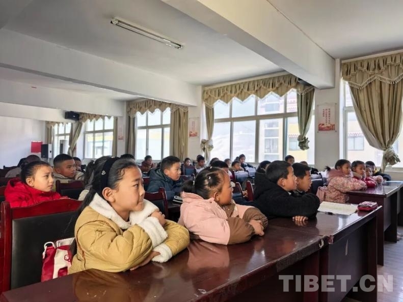 圖為孩子們正在認(rèn)真聆聽“七彩假期·青稞苗學(xué)堂”開班儀式上的講解
