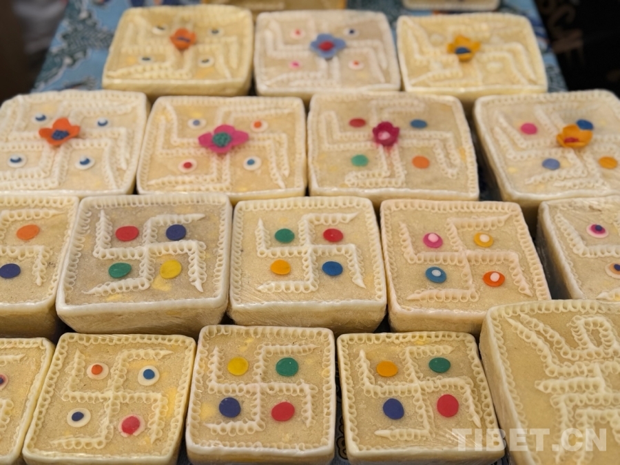 圖為藏式糕點,藏語稱為“推”,象征吉祥如意。