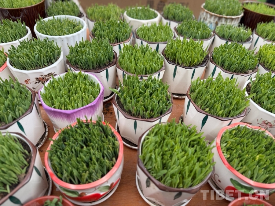 圖為青稞苗,是藏歷新年的“吉祥綠植”,象征著生機勃發(fā)、萬物生長。