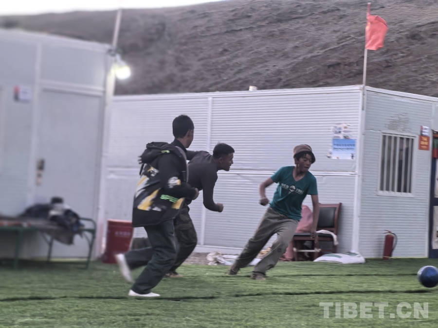 圖為少年們在臨時安置點的板房間踢足球 攝影:陳明(攝于2025年)