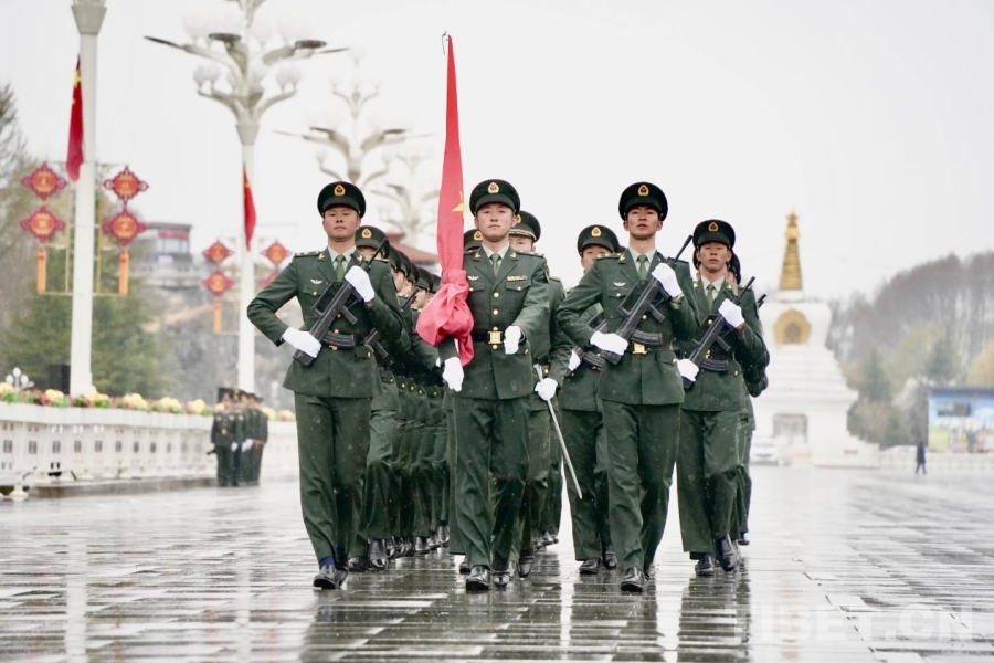 中國西藏網(wǎng)訊 雨雪紛飛,紅旗獵獵,布達拉宮廣場在飛雪中更顯莊嚴。3月28日上午,西藏自治區(qū)各族各界干部群眾在拉薩布達拉宮廣場參加升旗儀式,慶祝西藏百萬農(nóng)奴解放紀念日。