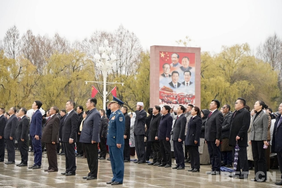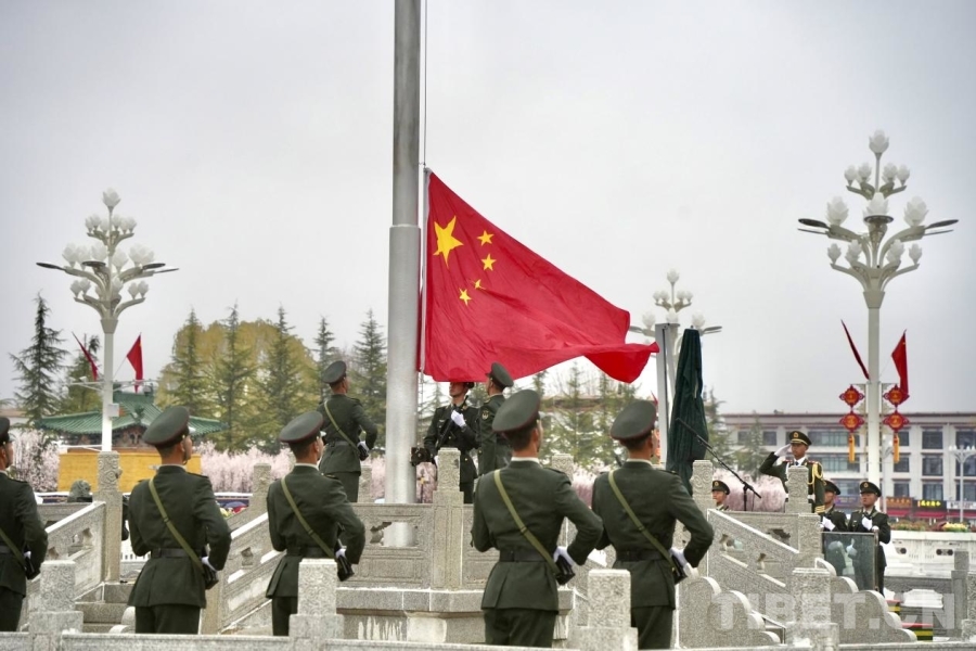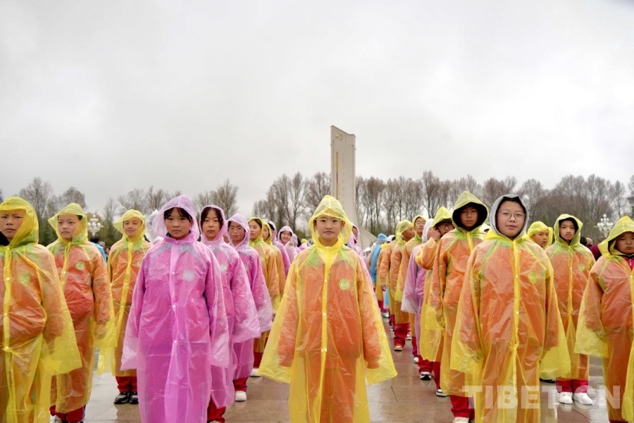 3月28日,來自拉薩市的學生群體參加升旗儀式