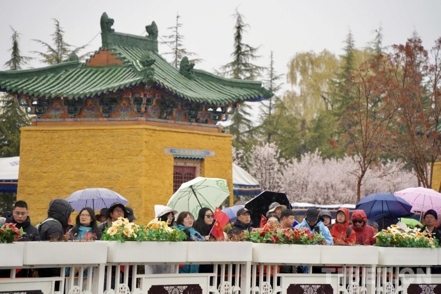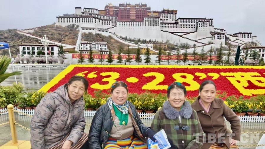 清晨的布達拉宮廣場,紅墻白宮在紛揚的雪幕中巍然矗立,廣場中央擺放的“3·28西藏翻身農(nóng)奴的節(jié)日”字樣的鮮花格外醒目。來自全區(qū)的各族各界代表身著節(jié)日盛裝,冒著風雪早早來到現(xiàn)場,整齊列隊。
