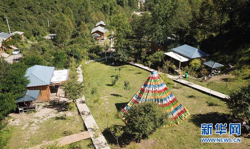 2019年8月14日無(wú)人機(jī)拍攝的甘南藏族自治州香告村一處“藏家樂(lè)”。新華社記者 陳斌 攝