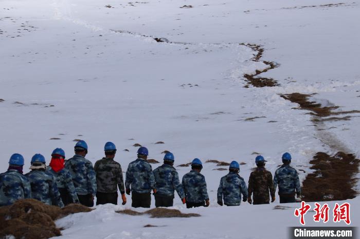 圖為“三區(qū)兩州”玉樹地區(qū)電網(wǎng)工程建設(shè)稱多110千伏輸變電二回線路施工現(xiàn)場,施工人員正在鏟除厚重的積雪,為前往施工現(xiàn)場開路。徐曉韜 攝