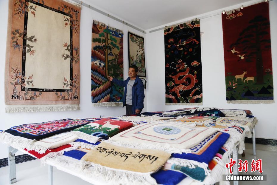 5月8日,在青海省湟中縣加牙村加牙藏族織毯技藝傳習(xí)所內(nèi),加牙藏毯第七代傳人楊永良展示制作精美的藏毯。楊永良介紹,加牙村有著300多年的織毯歷史,加牙藏毯色澤艷麗不褪色,質(zhì)地堅硬而富有彈性,可以使用近200年。獨(dú)特的編制技法及濃郁的民族特色使加牙藏毯受到眾多國內(nèi)外藏毯愛好者的喜愛。中新社記者 馬銘言 攝