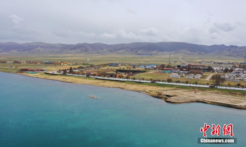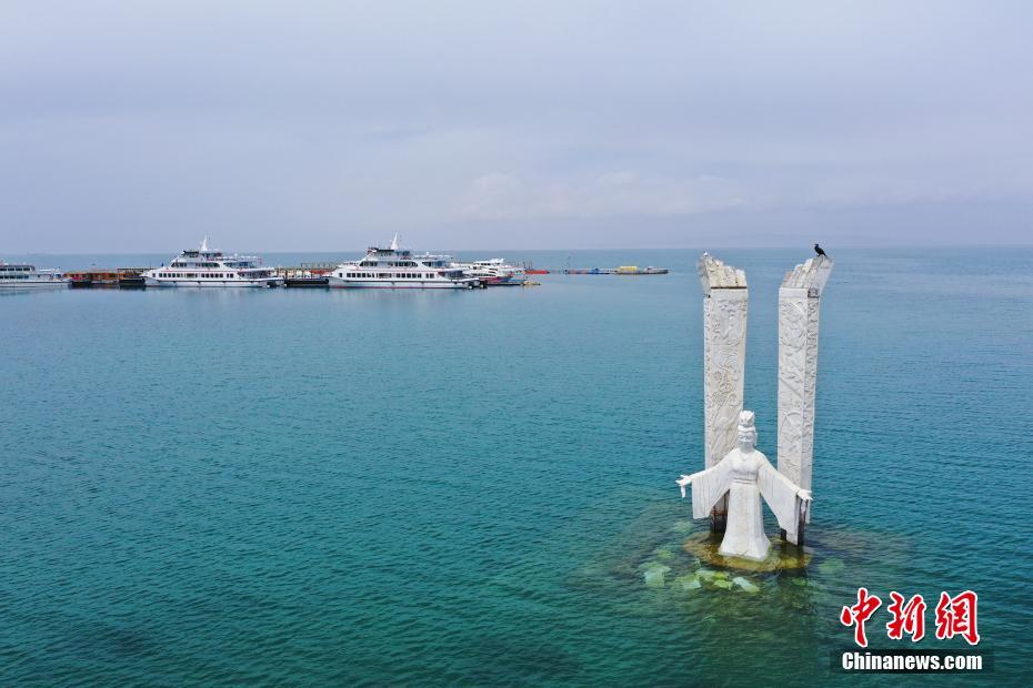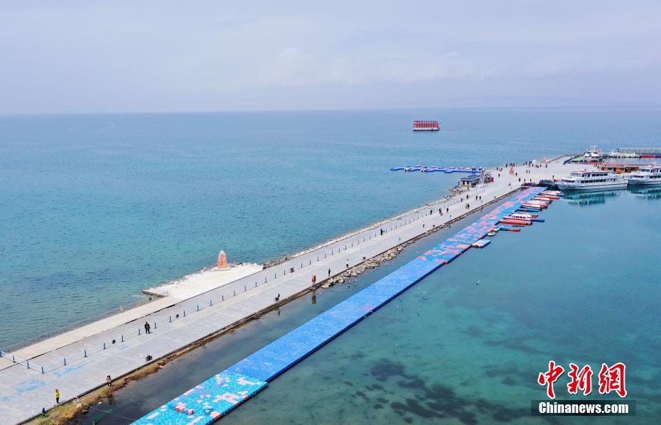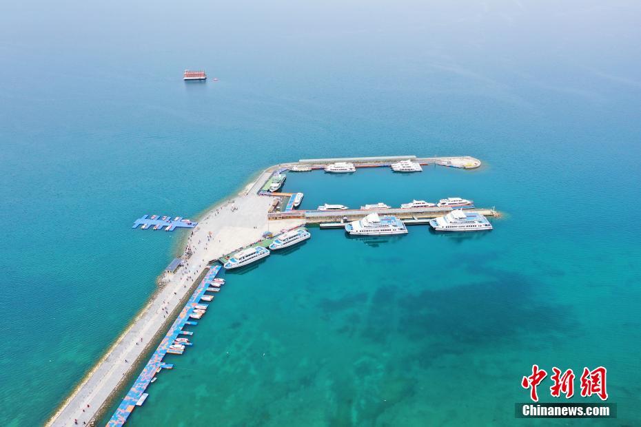 5月19日,航拍被碧綠湖水包圍的青海湖二郎劍景區(qū)碼頭。初夏時(shí)節(jié),青海省海南藏族自治州青海湖畔萬物復(fù)蘇,碧水藍(lán)天,宛如油畫。中新社記者 馬銘言 攝