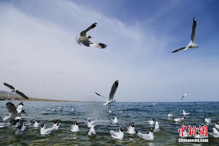 5月19日,水鳥在青海湖自由翱翔。初夏時(shí)節(jié),成群的魚鷗、斑頭雁等多種水鳥在青海省海南藏族自治州青海湖景區(qū)內(nèi)自由翱翔,嬉戲玩耍,吸引游客前來觀賞。中新社記者 馬銘言 攝