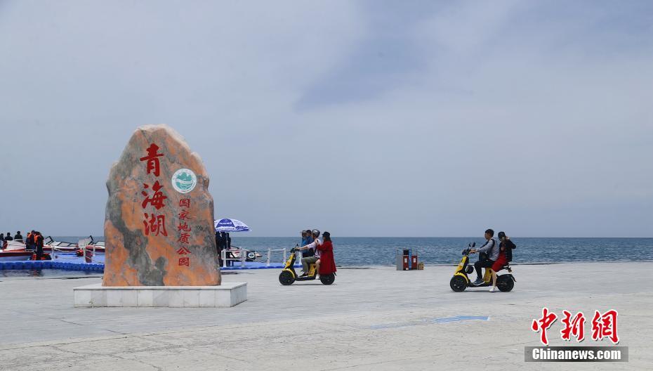 5月19日,游客騎著電動(dòng)車在青海湖二郎劍景區(qū)內(nèi)游玩。當(dāng)日是中國旅游日,游客在青海省海南藏族自治州青海湖二郎劍景區(qū)內(nèi)觀湖、與水鳥互動(dòng)、感受初夏青海湖的海天一色之美。中新社記者 馬銘言 攝