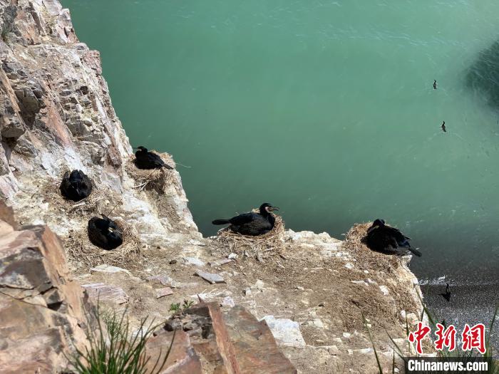 圖為鸕鶿島內(nèi)正在筑巢的鸕鶿。李江寧 攝