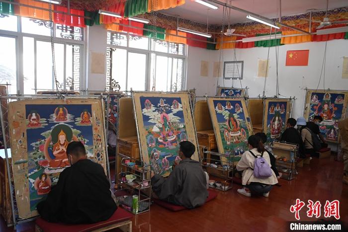 但多年來,爐霍縣的郎卡杰唐卡畫師越來越少?!皞鹘y(tǒng)的唐卡繪畫傳習以師徒制為主,需要學生家庭承擔生活、顏料、畫具等費用,這對農(nóng)牧民家庭是筆不小的支出。”63歲的澤仁達吉年輕時通過師徒制成為畫派傳承人,在他看來,傳統(tǒng)的傳承方式需要改變。