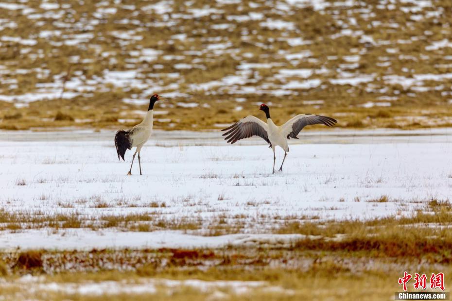 翩翩起舞的黑頸鶴。若爾蓋宣傳部供圖 攝