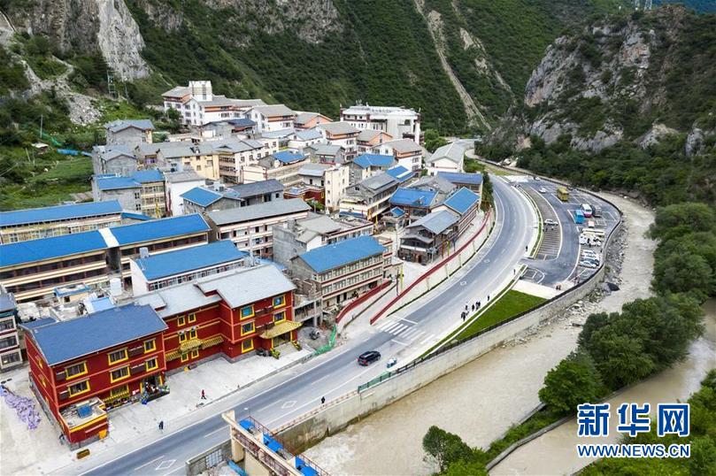 九寨溝地震震中九寨溝縣漳扎鎮(zhèn)新貌(無人機(jī)照片,6月18日攝)。新華社記者 劉坤 攝