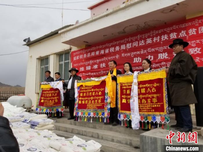 資料圖為青海省稅務(wù)局扶貧工作領(lǐng)導(dǎo)小組成員赴達(dá)英村捐贈(zèng)物資。國家稅務(wù)總局青海省稅務(wù)局供圖