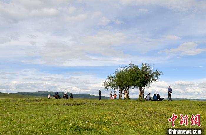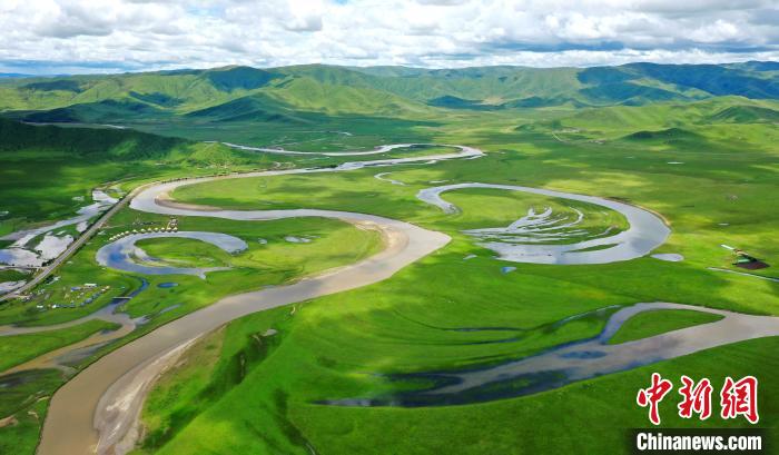 夏日的四川省阿壩州紅原草地,綠草如茵,廣袤無垠,藍(lán)天、白云、牛群構(gòu)成了一幅幅美麗的圖畫,美不勝收。