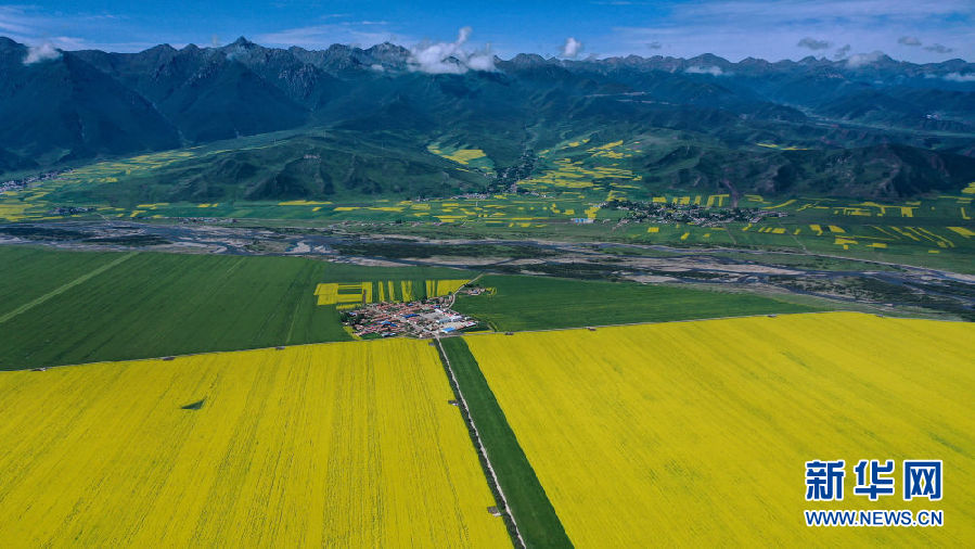 這是7月23日拍攝的門源回族自治縣的油菜花田(無人機照片)。新華社記者 吳剛 攝