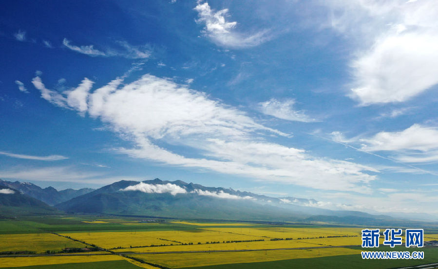 時下正值高原油菜花競相綻放的季節(jié),在青海省海北藏族自治州門源回族自治縣,金黃色的油菜花在高原藍天和云霧映襯下形成一幅壯麗畫卷,吸引游客前來觀賞。