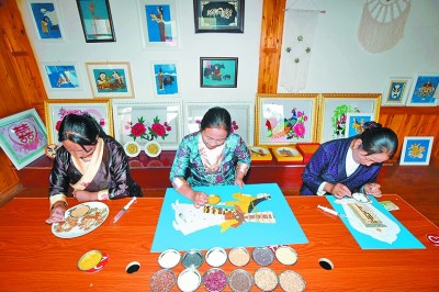 學(xué)習(xí)唐卡、堆繡等技藝的村民。李娜 攝