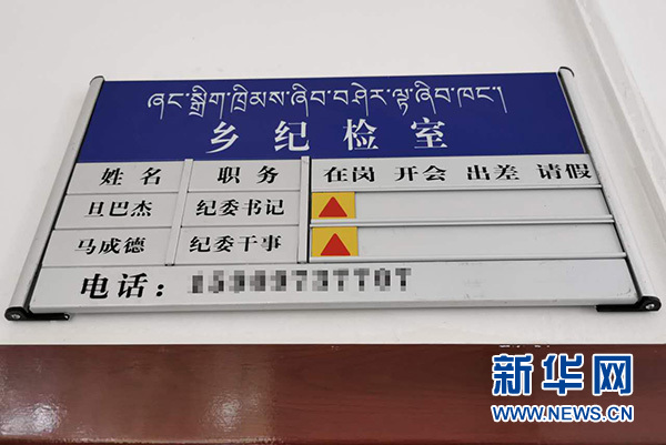 青海省黃南藏族自治州同仁市曲庫乎鄉(xiāng)設(shè)置的“干部去向告知牌”。新華網(wǎng) 王志艷 攝