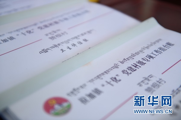 瑪沁縣拉加鎮(zhèn)贊根村“十化”黨建專項工作組臺帳。新華網 潘彬彬 攝
