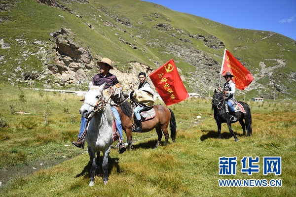 瑪沁縣拉加鎮(zhèn)贊根村的“馬背宣傳隊”。新華網 潘彬彬 攝