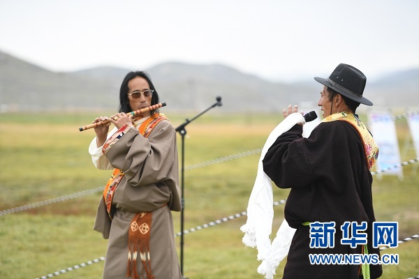 瑪沁縣大武鄉(xiāng)格多村的文藝隊表演。新華網 潘彬彬 攝